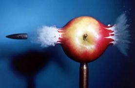 麻省理工学院的电子工程教授哈罗德·金顿(Harold Eugene “Doc” Edgerton)早在1964年的时候,就利用每秒100万帧的高速相机拍摄了子弹打穿一个苹果的照片。但是50年后,人类,具体来说…